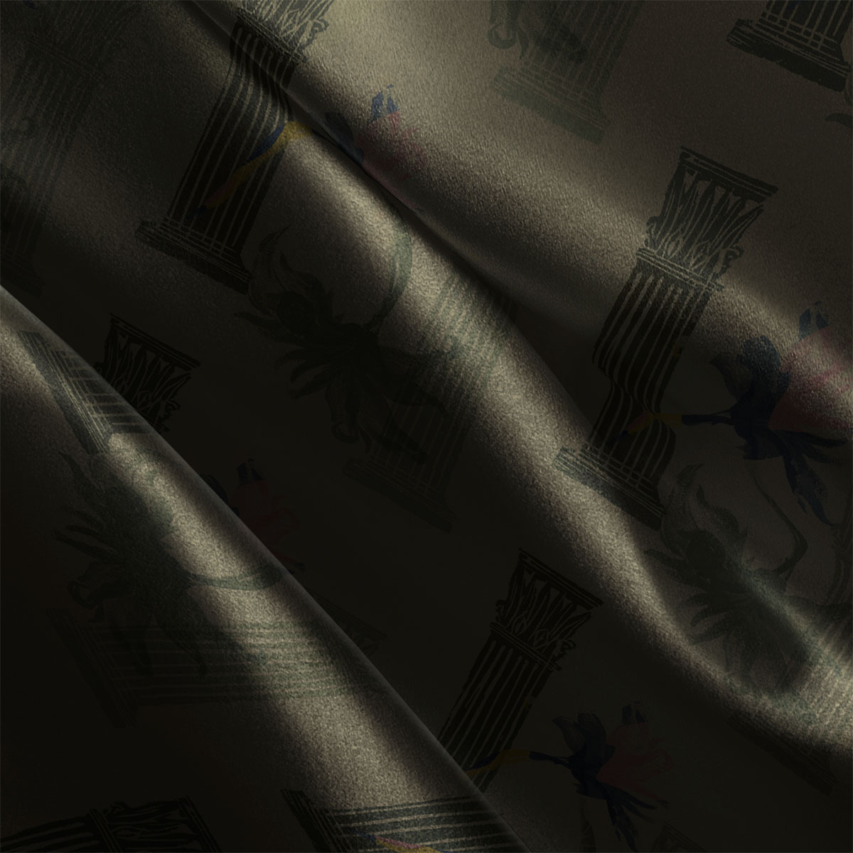 Un motif qui met en dialogue la force d’une colonne grecque, gravée à la main dans le bois, et la délicatesse d’une fleur de lys, peinte avec des pigments préparés artisanalement.